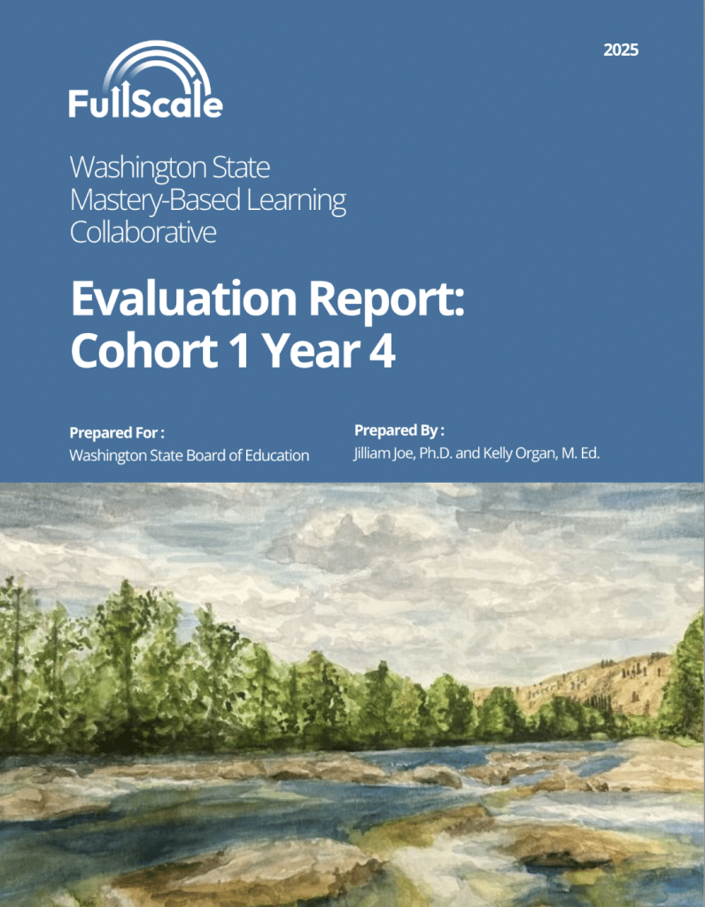 FullScale is conducting a six-year evaluation of the MBLC to identify policies, practices, and system changes that can support successful mastery-based and culturally responsive learning. The report shares findings from the first four years of the first cohort of MBLC schools, based on extensive surveys and interviews of educators, school leaders, students, state leaders, and professional learning providers.